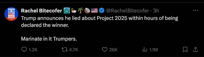 Is this the country the maga cult wants? Yes? but what about all the rest who wouldn’t vote for a black woman? Those who claimed that they wouldn’t vote for Harris because she did not say the right words on Gaza? Well Israel now has no restraints, good choice you made for them, right? The brownshirts, the people who want to act like kids in gangs, want to have rule by thugs, that believe might makes right are going to find out it take far more than pretend bravado to keep a country this size running. The movie Idiocracy was not a how to do it show, but a warning. Right now we have moved a lot closer to the movie. Hugs
